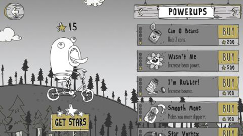 3、此外,小星星还可以用来升级改造“呆瓜”的自行车、为其加装喷射器等设备,或者直接拿来强化“呆瓜”本身,让它变得更有弹性更加坚韧。这样“呆瓜”的跳崖之旅就会逐渐拥有许多新展开,遇到的意外情况也会更多(比如被便便或者陨石砸)。运气好一点还可能拿到稀有的黄金券,黄金券可用于在游戏结束前开启命运转轮,转出更多惊喜(或者惊吓)。
