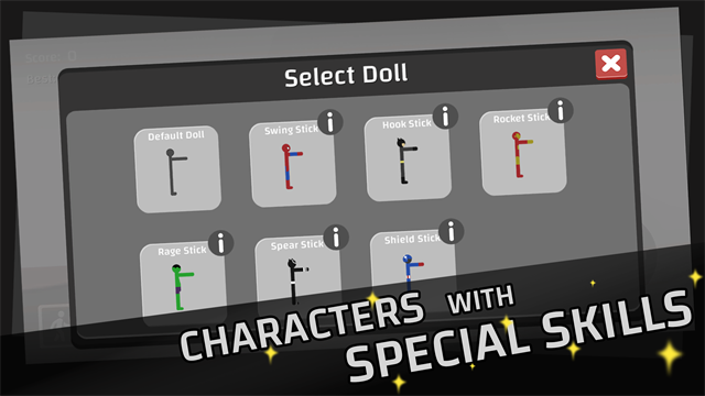 2、当您自己摧毁火柴人时,这些道具会增加伤害。面对游戏中的所有障碍。