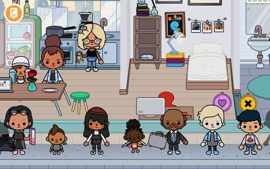 5、又或者点击左上角的退出房间按钮,去到自己的家中,可以看到也有很多小朋友,点击任何人物或者物品都可以移动。