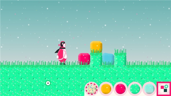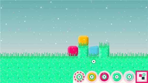 2、进入游戏界面,可以看到右下角有一排各种颜色的方块;