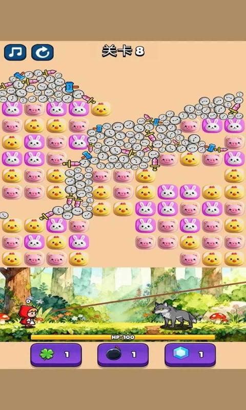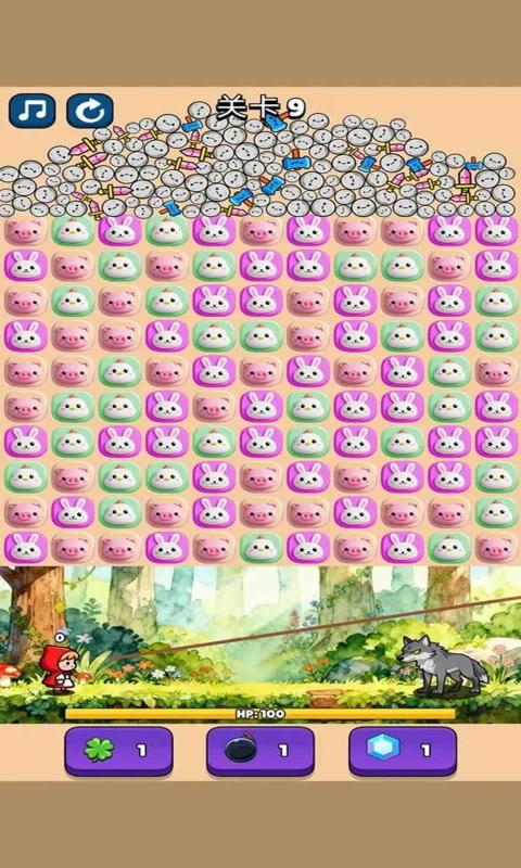 砸了个狼是一款模拟小红帽进行消除的趣味闯关游戏。游戏中玩家将扮演小红帽,躲避大灰狼的追击, 通过消除方块让石头落下来变成小红帽的武器,小红帽再用掉下来的武器去攻击恶狼。游戏玩法简单有趣,还有超多丰富的关卡等你来挑战。感兴趣的玩家欢迎在本站下载体验。