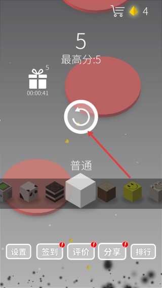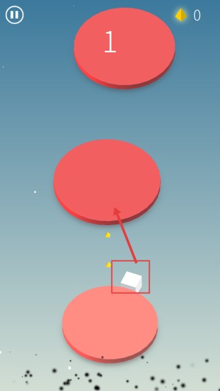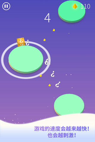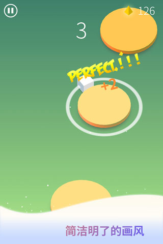 2、方块落在圆形平台上时,注意平台数字,连续跳跃提升分数,积累金币。