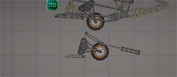 3、需要注意的是,这种不稳定的结构一定要加上支柱,即机头中间的长铁块,调成无重力不碰撞,链接到机头外壳即可;