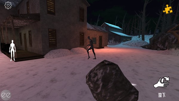 4、首先来到旁边的雪地上,捡起地上的石头;
