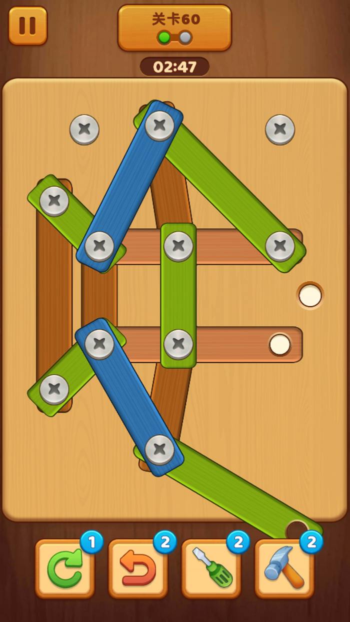 v1.18螺丝钉解谜是一款休闲轻松的解谜闯关游戏,玩家需要转动螺丝,解开机关让木条落下,随着关卡的推进游戏难度会逐渐增加,将给玩家的游戏增加很多挑战,此外游戏玩法操作简单,玩家可以随时随地开启游戏,喜欢的玩家欢迎从本站下载体验。