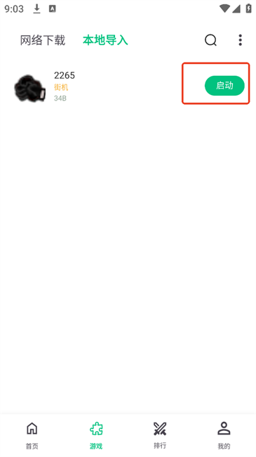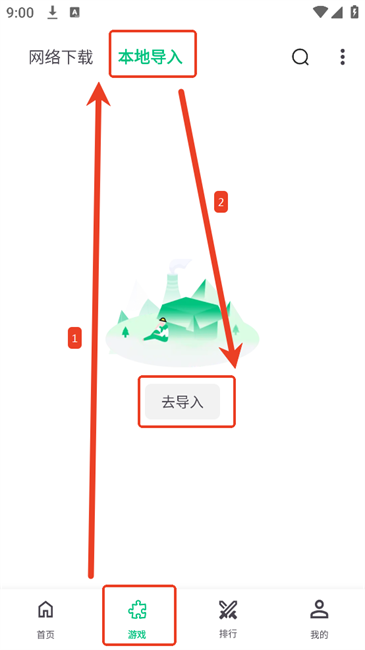 1、打开app点击【游戏】,选择[本地导入]后点击“去导入”