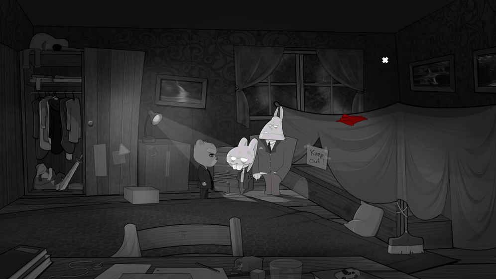 与熊同在是一款卡通风格烧脑解谜游戏,游戏采用黑白2d风格画质加上非常引人入胜的游戏故事剧情,玩家需要和自己的小熊前往不同的房间进行探索寻找真相,操作简单但是很看玩家的解谜能力,众多的线索是需要不停的寻找才能找到的,只要有了线索,那么谜题马上就能解开。感兴趣的玩家快来试试吧。