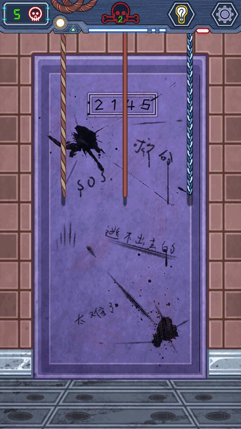 第5关:绳子的颜色数量对应数字,拉绳子的顺序为:左,中,中加右,左加右。
