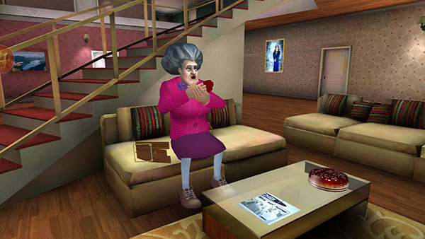 4、她会在房间内随意走动,吃早餐、午睡、看报纸等,时刻注意她的行动,并进入房间的衣柜内找到整蛊道具。