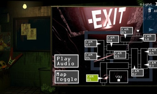 当熊哥弗莱迪笑的时候就意味着它正在动。当它出现在门前的监控时,等你再次听到弗莱迪的笑声,就要非常快速地关下右边的门。