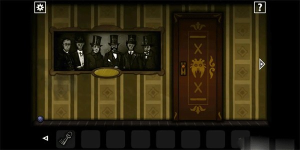 通过电梯来到一层,先往左走进入第一个房间,拿走左下角的「蓝色弹珠」。点击画像,观察画像上的符号。