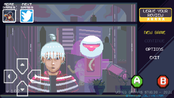 1、在本站下载安装该游戏打开进入,点击左边的方向键盘,选择NEW GAME,点击绿色按钮A。