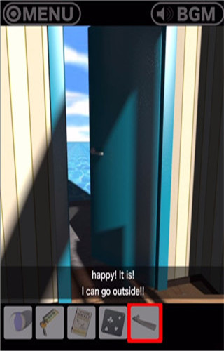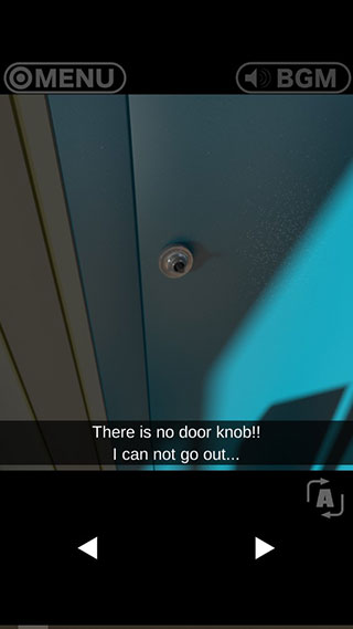 2、进入游戏,门没有门把手,不能出去,我们推门进入房间