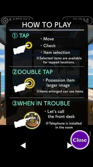 3、逃脱游戏度假酒店热带沙滩提供了操作指南,玩家需要找到线索逃脱密室