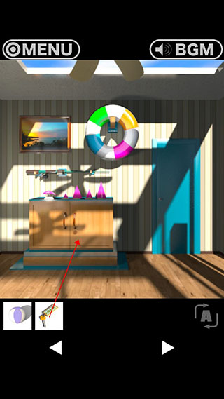 26、底下柜子上有紫的的翻船,这是上面舵的线索