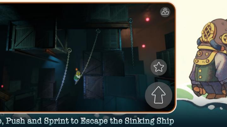 2、旋转的海浪和森林瀑布危及你的逃生路径。小心跳跃冲刺,并在沉船途中存活下去。