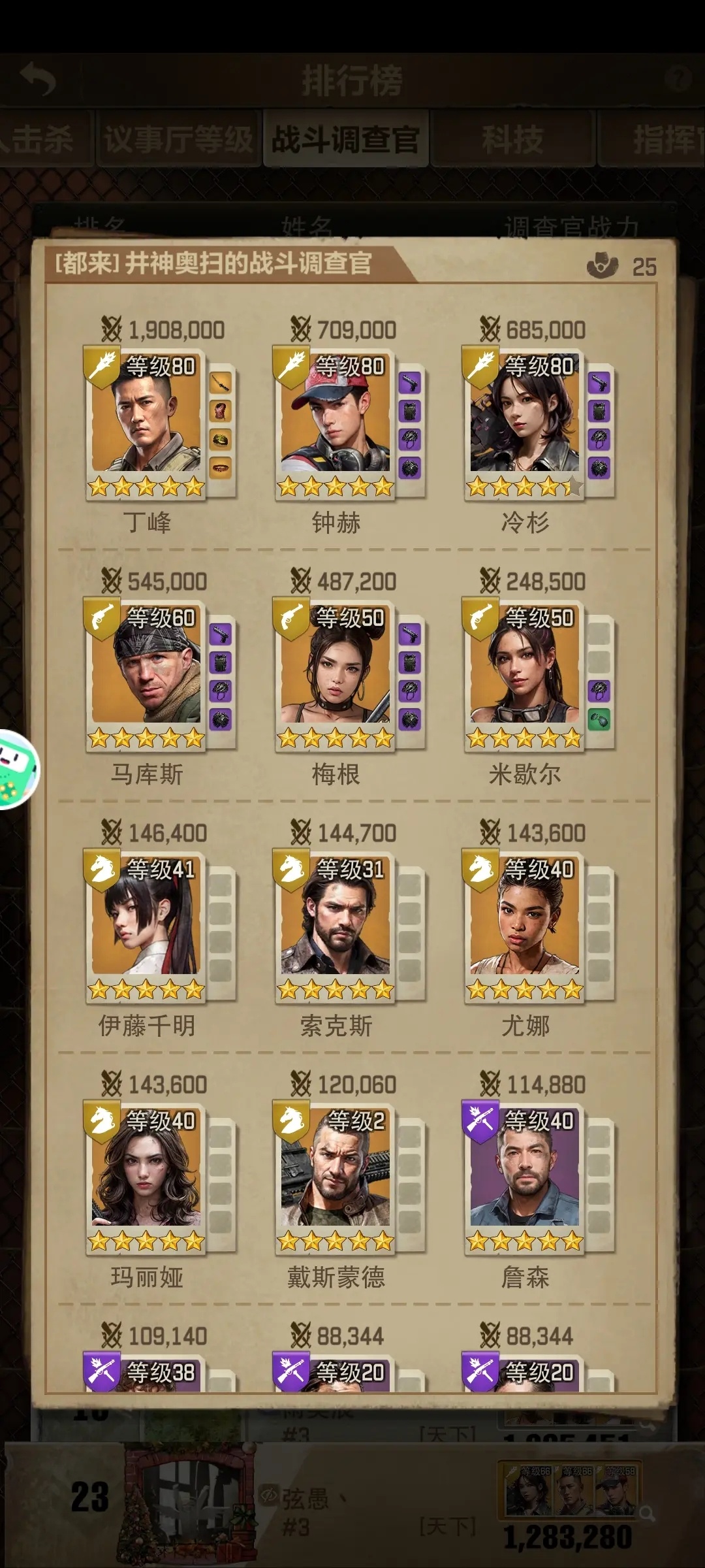 二队则准备一支骑兵,为资源的获取做好准备。至于第三支队伍,则可以按照大大们的习惯来安排。如果大大喜欢收集资源,安稳防守,则可以再安排一支骑兵;若是喜欢进攻掠夺,一支射手队可谓是画龙点睛;对于佛系玩家嘛,自然是再组建一支步兵队啦~当然,前期的资源是不足以我们将九位调查官都培养至高等级的,现阶段我们要做的就是尽快解锁九位调查官的位置,位置后继续培养调查官做好准备。