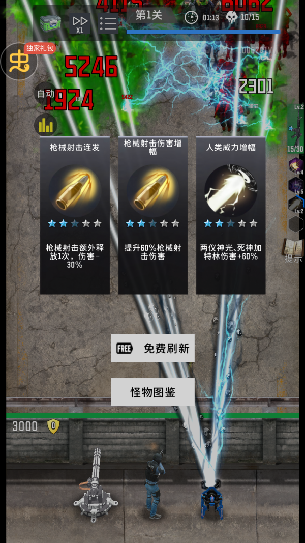 4、当上方怪物波数满时候会出现boss击败可以获得大量奖励。