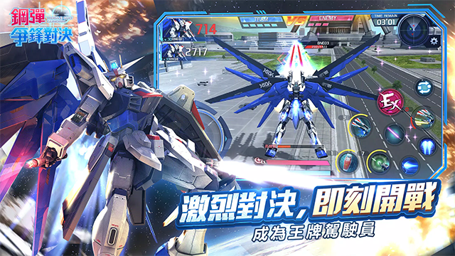钢弹争锋对决由万代南梦宫娱乐制作打造的3D动作射击对战类游戏。在“钢弹争锋对决”这款游戏中玩家将化身成为一位机甲驾驶员,驾驶者高达百米的巨型机甲与其他机甲敌人进行战斗。这款游戏有着多种不同炫酷的机甲等待玩家解锁,不同的机甲有着不同的技能和武器玩家需要完成游戏发布的各种任务获得机甲碎片解锁相应的机甲。