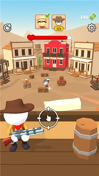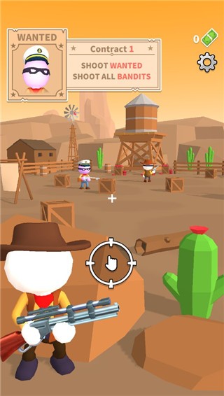 西部狙击手是一款非常好玩具有特色的动作射击类游戏,这款游戏采用了精致的3D引擎打造浓浓的美式西部场景。在“西部狙击手”这款游戏中玩家将化身成为一位超酷的牛仔警长,在着充满狂野的西部大陆上守护着小镇的和平。游戏中还搭配了多种不同类型的枪支,玩家可以在仓库内随意选择对付拿着在小镇作乱的盗贼。