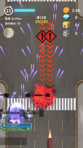赛道的挑战:主要就是结合了飞行射击和赛车竞速两种玩法的模式,通过击杀其他赛车,保障自身安全的前提下,完成任务挑战即可,达成任务还需要挑战BOSS哦。