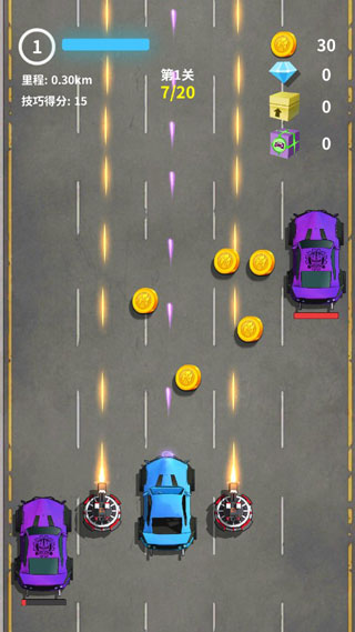 放置合成:通过将两个等级一样的赛车进行合成,获得更高级的车辆能够赋予你更强力的赛车,升级武器攻击和副翼,让关卡挑战更加的简单。