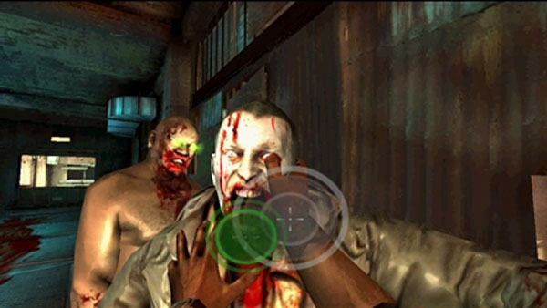 3、在我们尽情杀僵尸的过程中,当你不幸的被僵尸群团团围住,动弹不得时,这时候僵尸那一张丑陋的的脸会出现在你的面前,你需要去点击不断出现的按钮,然后你会发现你成功的扭断了僵尸的脖子。