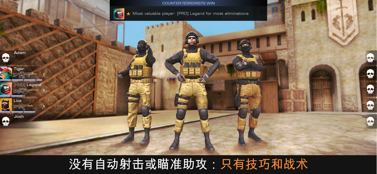 v0.36.0对峙2国际服是一款非常好玩的枪战射击类游戏,该游戏采用了3D写实搭配第一人称的游戏视角,带给玩家最刺激的枪战竞技体验。游戏中包含了非常丰富的武器装备等内容,并且采用了警匪攻防的经典游戏模式,玩家将可以和自己的队友们一起体验极致的竞技模拟。同时,玩累了还有非常多有趣的休闲模式,将为你带来十足的乐趣。