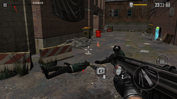 4、在狙击丧尸时,要时刻注意自己左上角的生命值,如果生命值过低的话要用医药箱补充生命值,不然很容易被攻击。