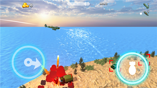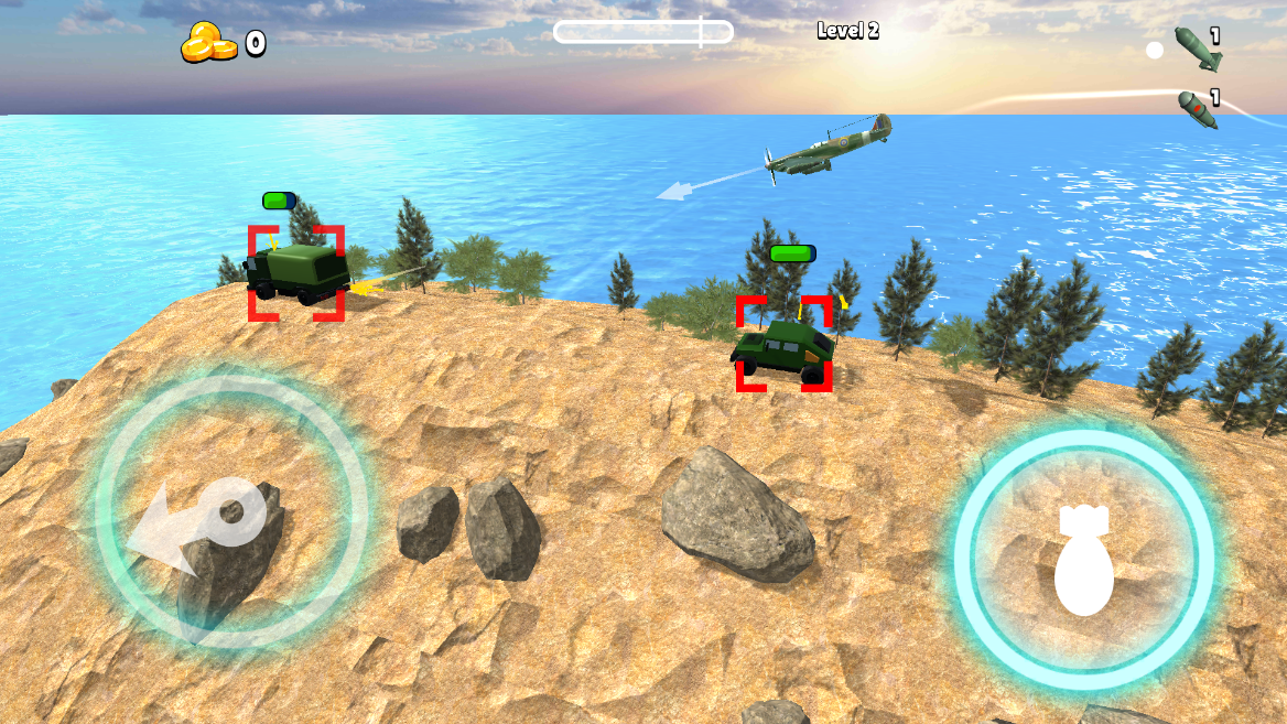 1、游戏玩法就是操控你的飞机去炸毁敌方的运输车,游戏的视角很独特,给玩家一种身临其境的游戏体验。