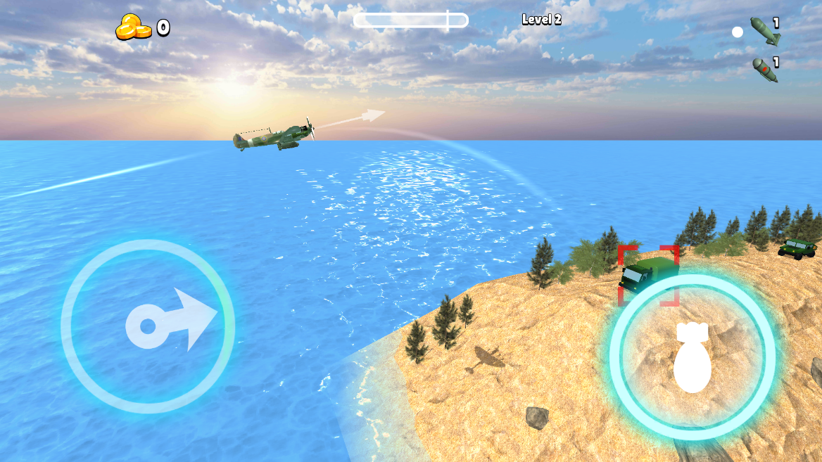 2、将飞机炸弹的抛物线对准运输车,将炸弹抛过去炸毁它,如果你的飞机装备了机枪等装备,可以直接对准车进行扫射。