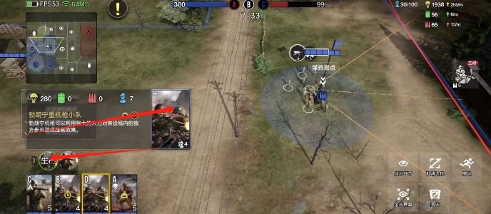 3、玩家点击机枪小队可进行生产,利用强大火力对架设线内的敌人造成压制效果。