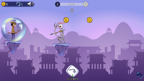 2、游戏中玩家通过左右滑动屏幕来进行拉弓,通过上下滑动来瞄准,松开屏幕即可进行攻击。