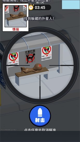 4、然后根据情报,找出外星人的位置,并点击瞄准进行射击。