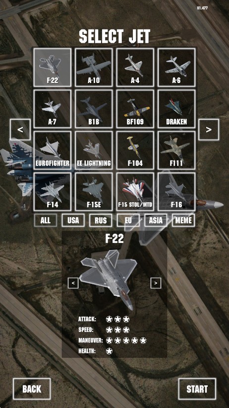 喷气式突袭行动提供多种战机供玩家选择,满足不同玩家的需求。游戏中的战斗机、轰炸机、攻击机等种类繁多,玩家可以根据个人喜好选择最适合自己的战机。