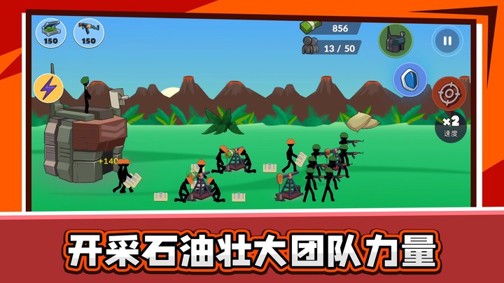火柴人乱斗2,这里位玩家们带来的是一款经典火柴人系列的竞技手游,游戏将射击、塔防、战争等多种游戏元素融入到了一起,玩家可以在游戏中解锁各种兵种来为你作战,在这里收集物资,建造营地,扩大军队规模,玩法简单不需要联网,喜欢的话快来下载体验吧。!