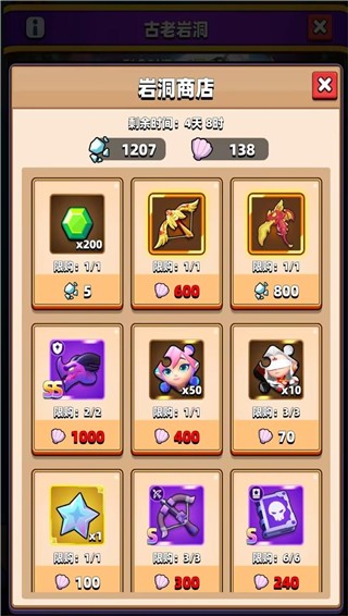 我们在挖矿过程中,会获得大量「贝壳」以及「铁矿石」,累计到足够的数量后即可去岩洞商店中兑换奖励,包含钻石、凤羽连弩、火龙之镰、虚空龙、英雄碎片等大量珍稀道具!