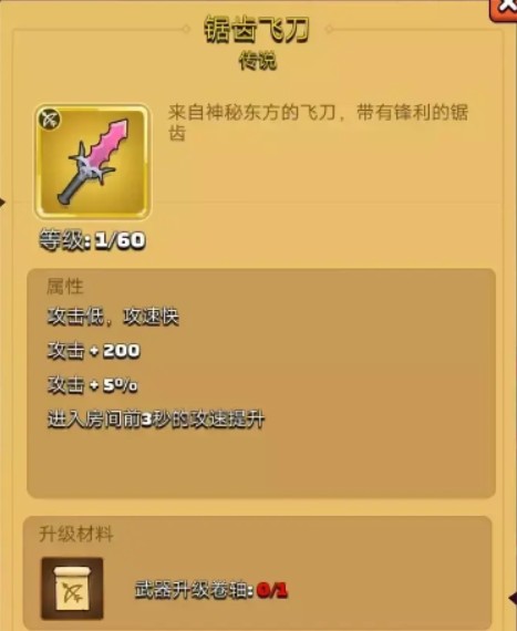 锯齿飞刀,东方神器,速度快伤害高,开局快速秒杀低阶怪物。