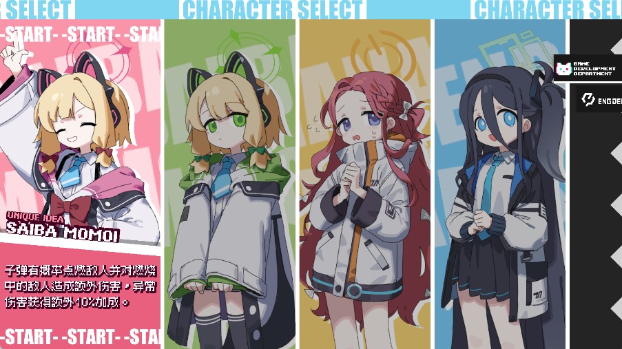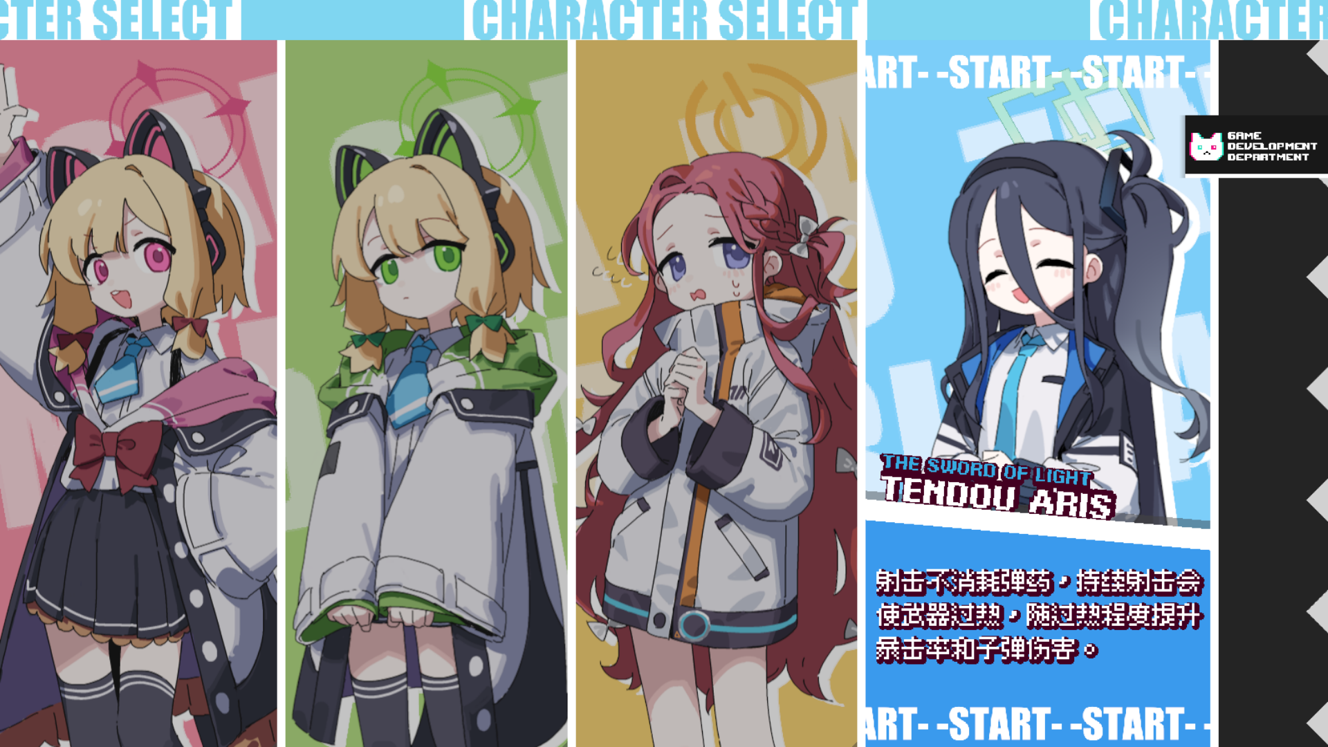 游戏开场由玩家在多个碧蓝档案角色中挑选,每名角色拥有不同技能与属性设定,战斗方式亦各具特色。同时需搭配初始武器,武器种类繁多,有的射速快,有的伤害高,组合得当能极大提升作战效率。