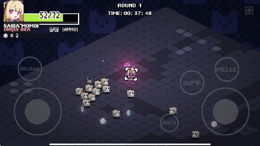 v0.2.1Enter The Nyangeon是B站up主乌龙茶速递以热门游戏《蔚蓝档案》为背景创作的一款像素风动作射击类手游。游戏的玩法参考了另一款十分经典的动作射击游戏——《挺进地牢》。玩家将可以操控《蔚蓝档案》中的角色深入地牢进行冒险,不同的角色有着不同的特殊能力,玩家还可以在地牢中发现各种奇妙的武器,挑战强大的BOSS,体验不断战斗的快乐。