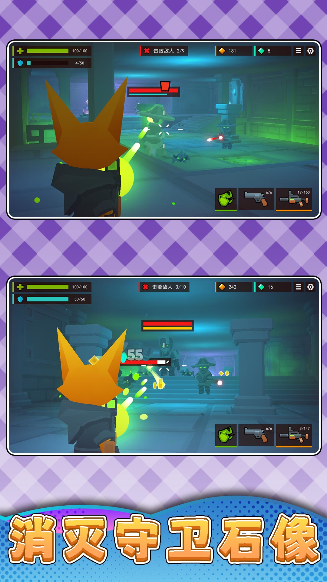模拟枪战3是一款采用了3D卡通画质制作的模拟探索射击类游戏。在“模拟枪战3”这款游戏中玩家将化身成为一个可爱毛茸茸的小狐狸,你将独自一人深入那幽暗错综复杂的地下城中。在偌大的地下城的通道内不断有着疯狂的变异生物鱼装备精良的士兵卫队巡逻,玩家需要利用你手中的武器将他们逐个击败。