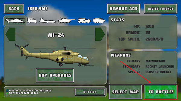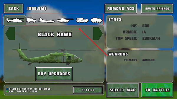 2、使用不同的战机或者地面作战车辆,不同的武器搭配来完成毁灭地面的任务。