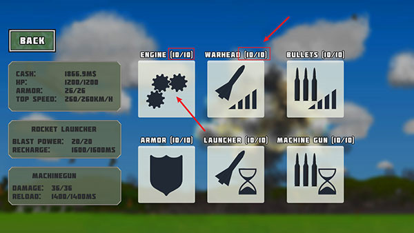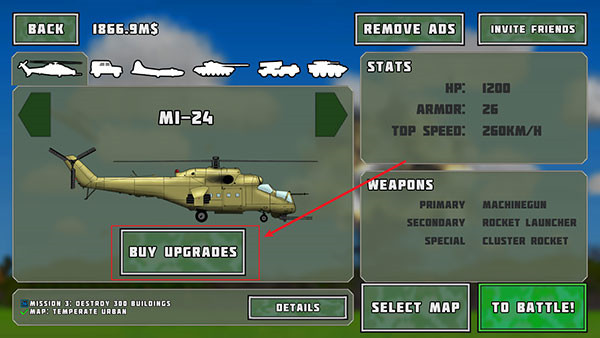 3、当购买成功后,点击【BUY UPGRADES】可进行武器升级;