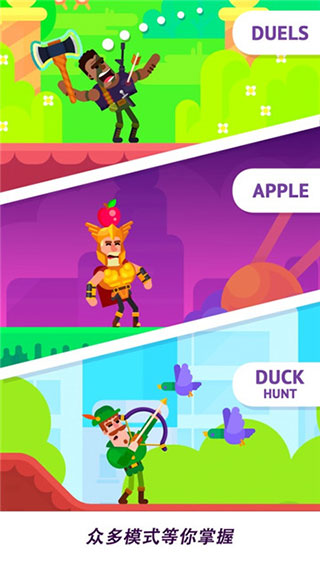 4、多种游戏模式。射落鸟儿或水果,在决斗中击败敌人并以此赚钱!