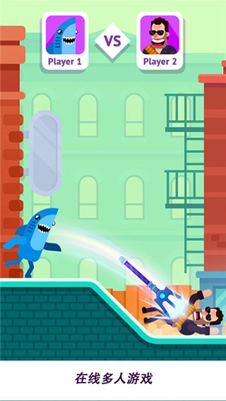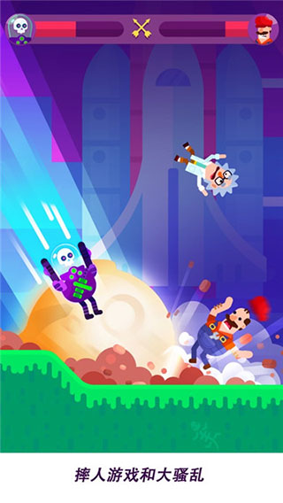3、在每一关开始的时候我们都可以看到对阵的两个人,并且由于每个人的武器都是不一样的,在游戏中玩家们需要能够很好地去根据那些角色的不同来选择不同的攻击方法,以及正确的技巧。
