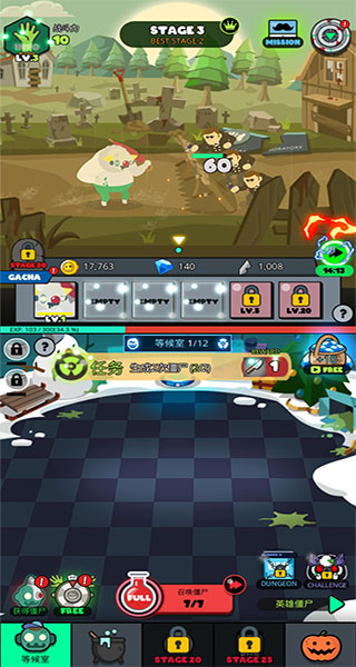 1、简单的挑战方式玩家能迅速的掌握,你要在其中为你的军队创造出更多不同的英雄,还要打造出不同的僵尸,通过游戏中的合成系统你将能收集到30种拥有不同特色的僵尸类型。