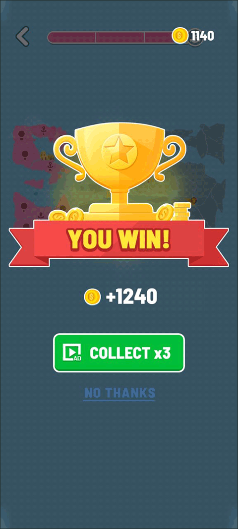 3、游戏成功后我们就会获得一定数额的金币,难度越高,获得的就越多。