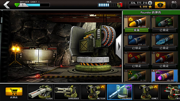 3、可以直接进入武器页面,在武器商店能够购买装备自行装上,右侧还可以选择弹药的样式和颜色,当然刚开始你只有一个武器没有什么选择的余地,后期武器研究了就会多起来,就可以自由选择自己认为最好用的武器啦。