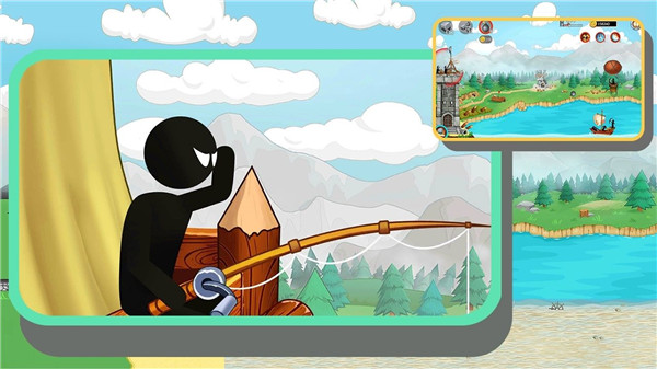 1、首先从本站下载并安装火柴人海上战争,并进入游戏,根据手势、移动屏幕将抛线拖至合适位置,并发射攻击