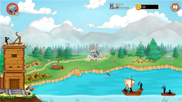 v1.0火柴人海上战争是一款策略塔防类游戏,游戏以火柴人为主题,玩家需要操控投石机投石的角度来对敌人的船只进行攻击,只有将所有船只抵挡在海岸以外便可成功闯关。玩家在游戏的过程中还可以使用道具对投掷物和投石车进行升级,使其攻速加快的同时提高投石车的伤害,帮助玩家面对大批袭来的地方船只依旧可以从容应对。